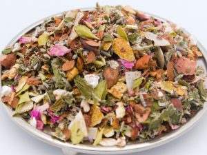 Zutaten | Kakaoschalen*, Orangenschalen*, Apfelstücke*, Kokoschips*, Himbeerblätter*, Lavendelblüten*, Buchweizen gepoppt*, Rosenblüten*, Buchublätter*, Steviablätter*, Lavandinöl*, |