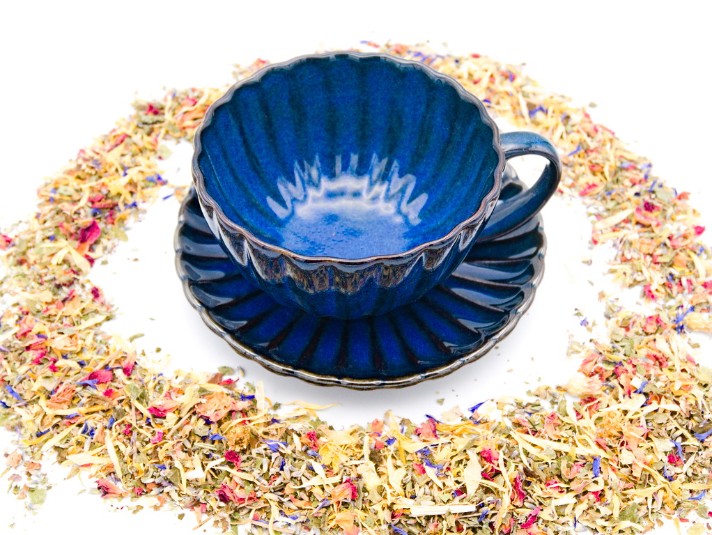 Tasse geriffelt mit Unterteller – blau